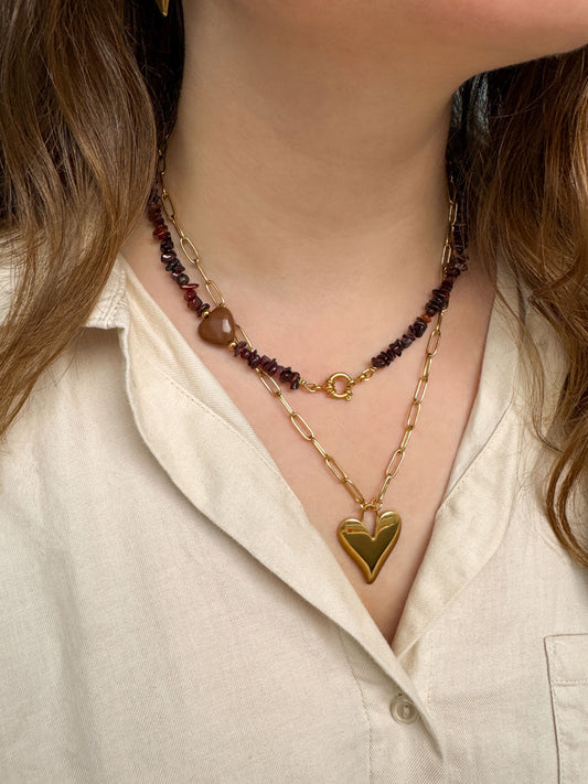 Je T’Aime Necklace | Gouden schakelketting met rood hartje