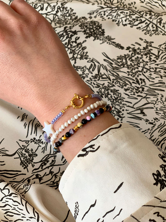 Armband Purple Star | Paarse kralen armband met ster en slotje