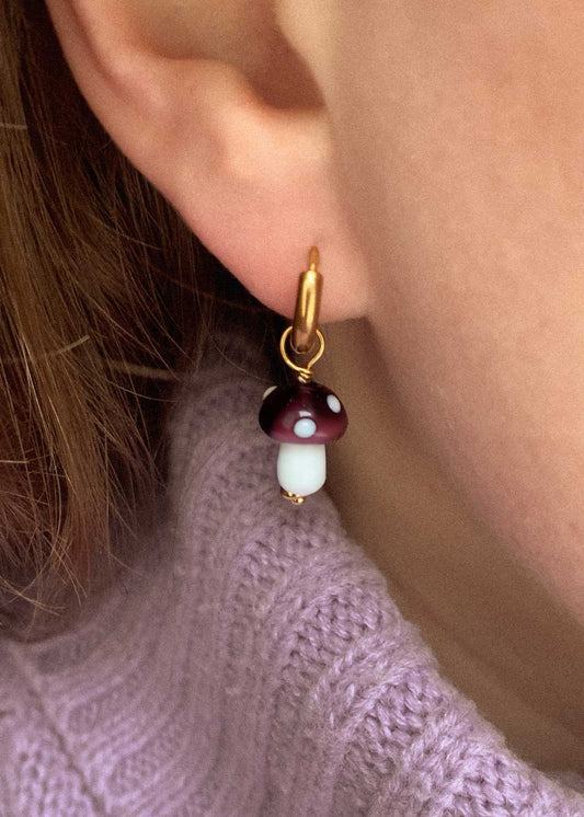 Magic Mushroom Earrings Gold | Oorringen met paddenstoel paars