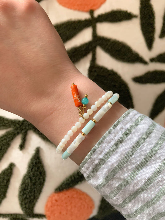 Armband Seaside | Armband met blauwe en witte schelp kralen
