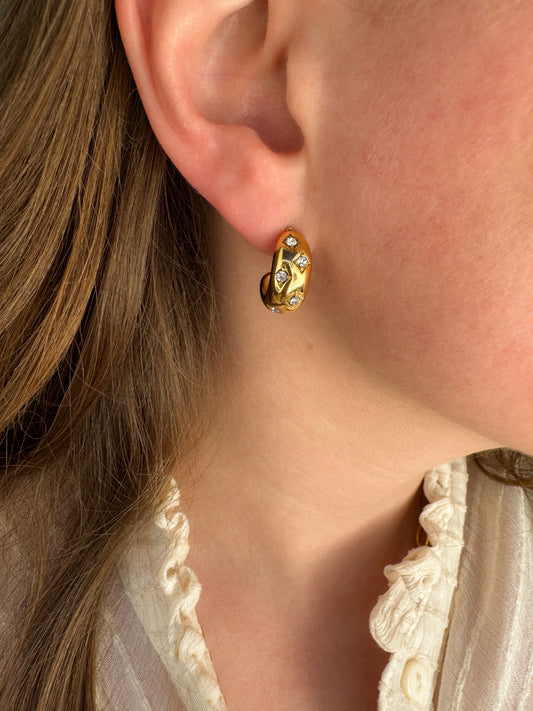 Oorstekers fijne steentjes goudkleurig
