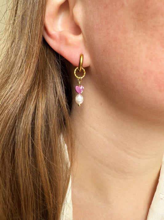 Oorringen hartje roze goudkleurig