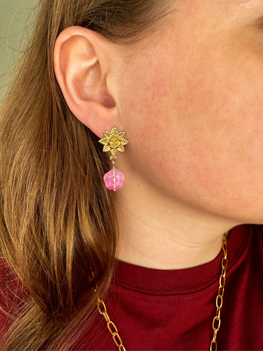 Oorhangers bloem statement roze