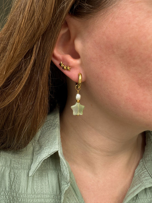 Oorringen parel ster goudkleurig