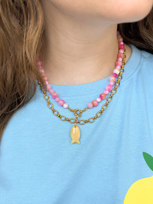 Roze kralenketting met gouden details