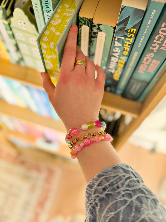 Roze kralenarmband met gouden details