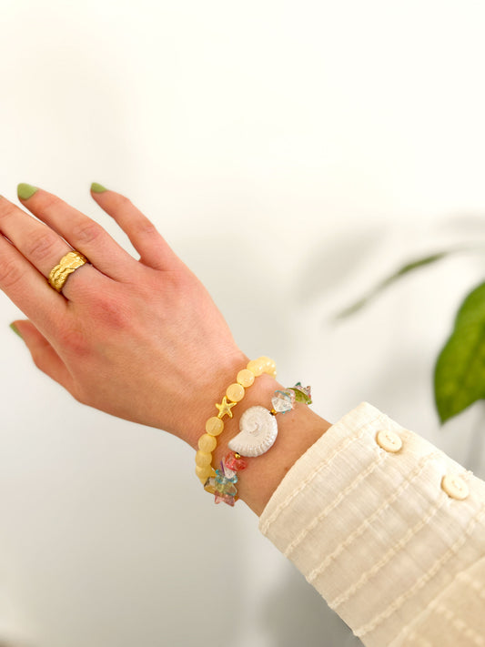 Gele kralenarmband met gouden zeester