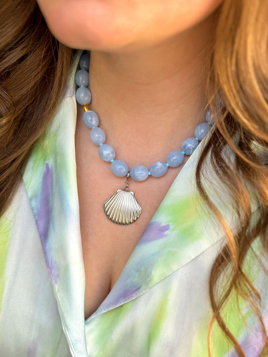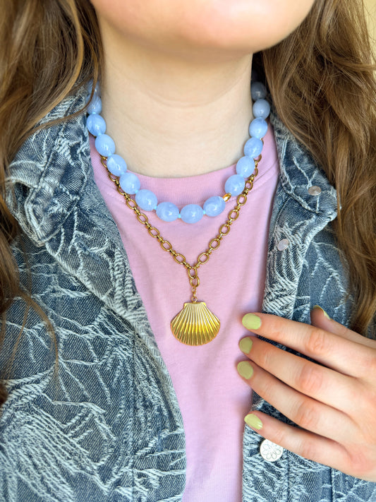 Lichtblauwe statement kralenketting