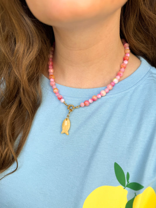 Roze kralenketting met gouden details