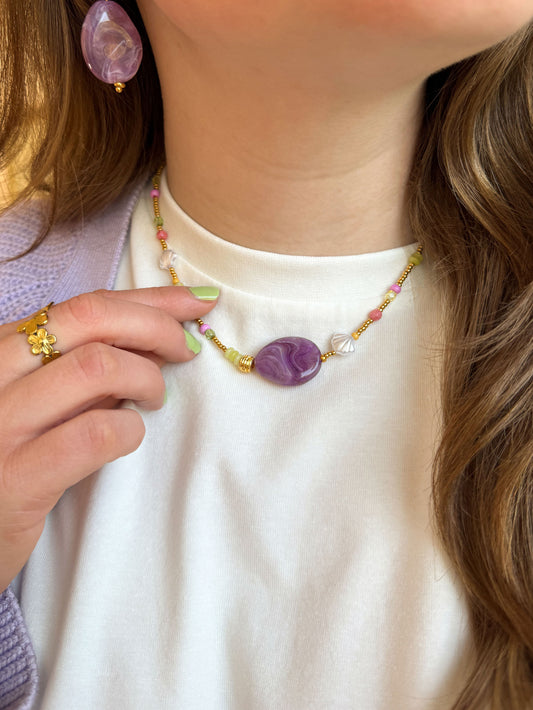 Kralenketting met paarse steen
