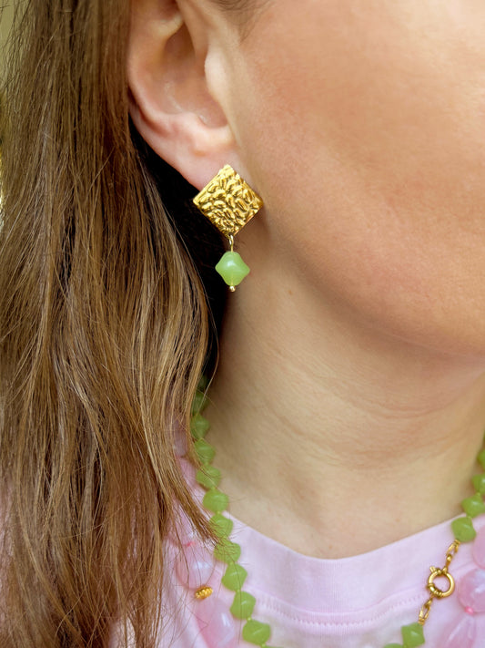 Gouden ruitvormige oorstekers met groene bedel