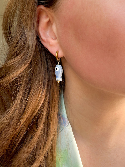 Gouden oorringen met blauw vis bedeltje