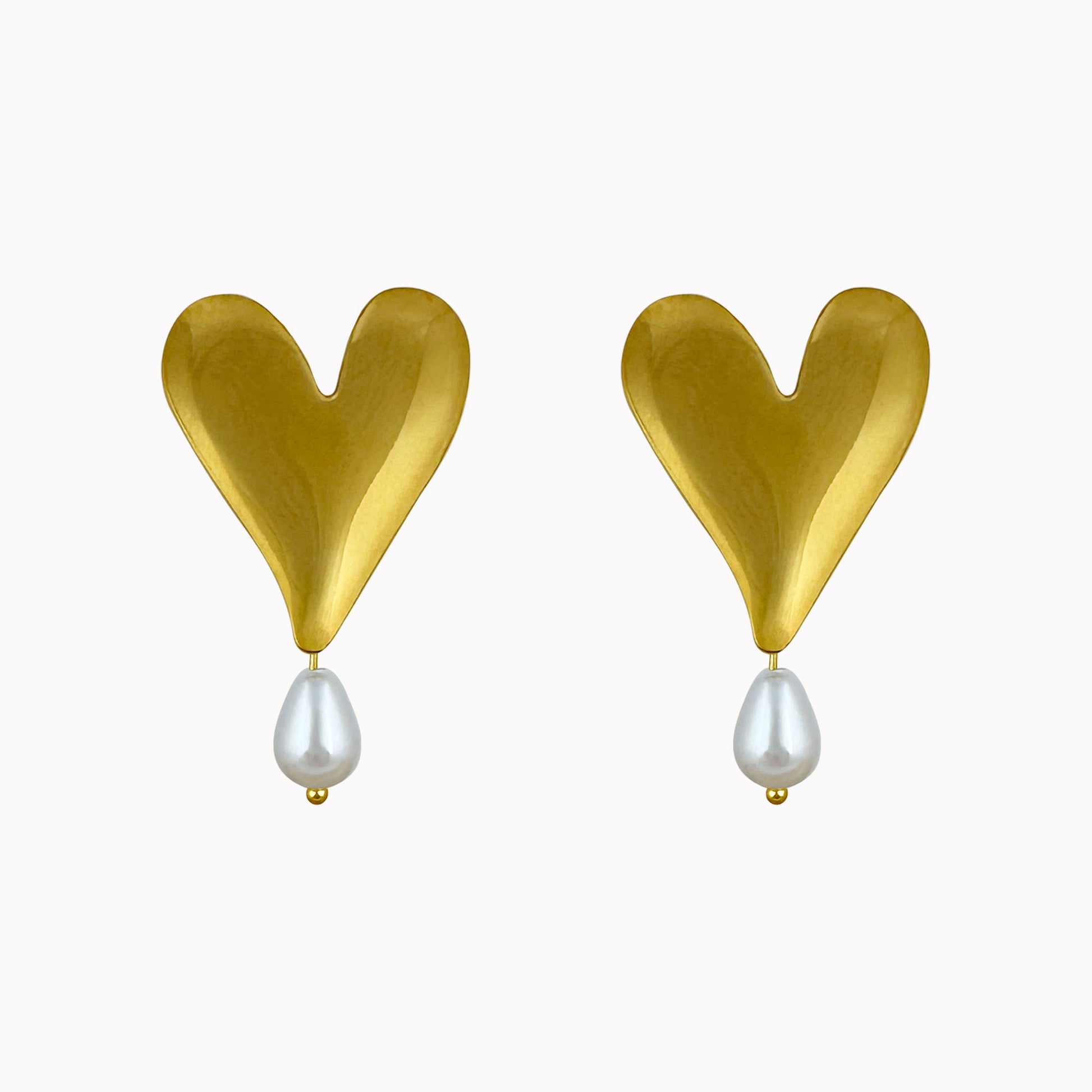 Statement met een zachte touch: dat is precies wat deze gouden oorbellen met hartjes uitstralen. Het grote hart springt direct in het oog, terwijl de parel een klassieke touch geeft aan de oorbellen. Perfect om te combineren met een cosy outfit of om je party outfit mee af te maken. De oorbellen zijn licht in gewicht en comfortabel zodat jij de hele dag kunt stralen!